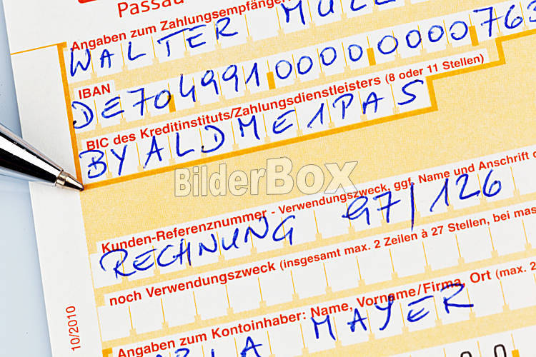 Zahlschein mit IBAN Nummer - Bilderbox Bildagentur GmbH